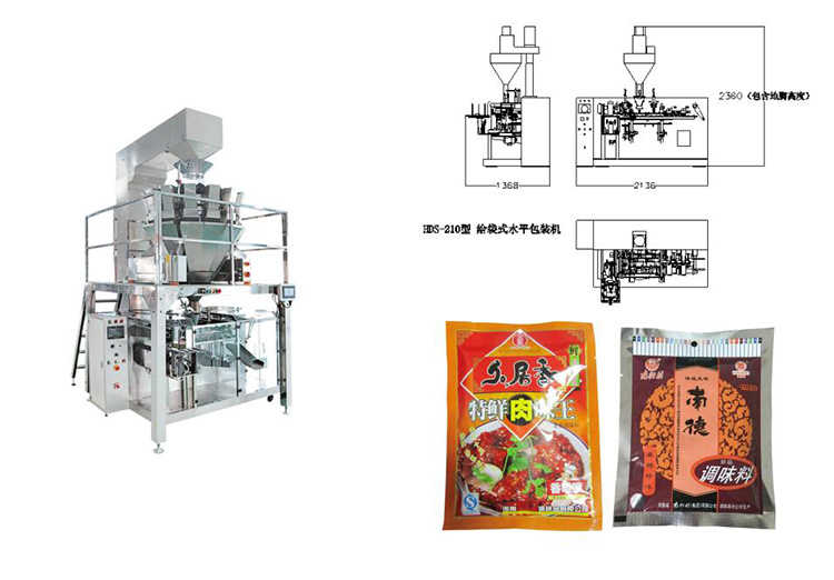 1. The metering and packaging system consists of a horizontal bag-feeding packaging machine and a blanking system;
